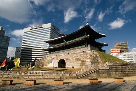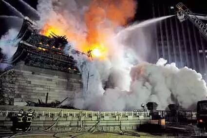 韩国崇礼门是首尔最古老的木建筑,被称作韩国“第一国宝”,2008年2月10日发生火灾,由于上层楼阁为木制建筑,火势迅速蔓延,并连同脊梁瓦片全部烧毁,仅下半部石砌部份仍保持完整。