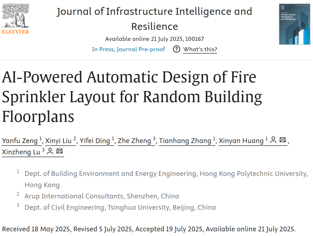 [2] Zeng et al. (2025) AI-Powered Automatic Design of Fire Sprinkler Layout for Random Building Floorplans, Journal of Infrastructure Intelligence and Resilience. https://doi.org/10.1016/j.iintel.2025.100167..
