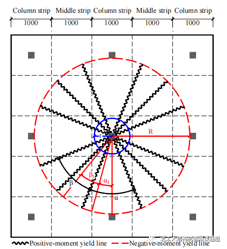 本研究中采用屈服线理论评估结构的抗弯承载力(图8),进而评估压力薄膜的贡献,经计算发现UPS-Sub和DPS-Sub的压膜贡献分别占抗弯承载力的17.2%和11.7%,表明向上的残余变形有利于压力薄膜的发展。此外,UPS-Sub和DPS-Sub的中柱节点冲剪区域的抗弯承载力贡献分别占结构总抗弯承载力的12.1%和11.4%。
