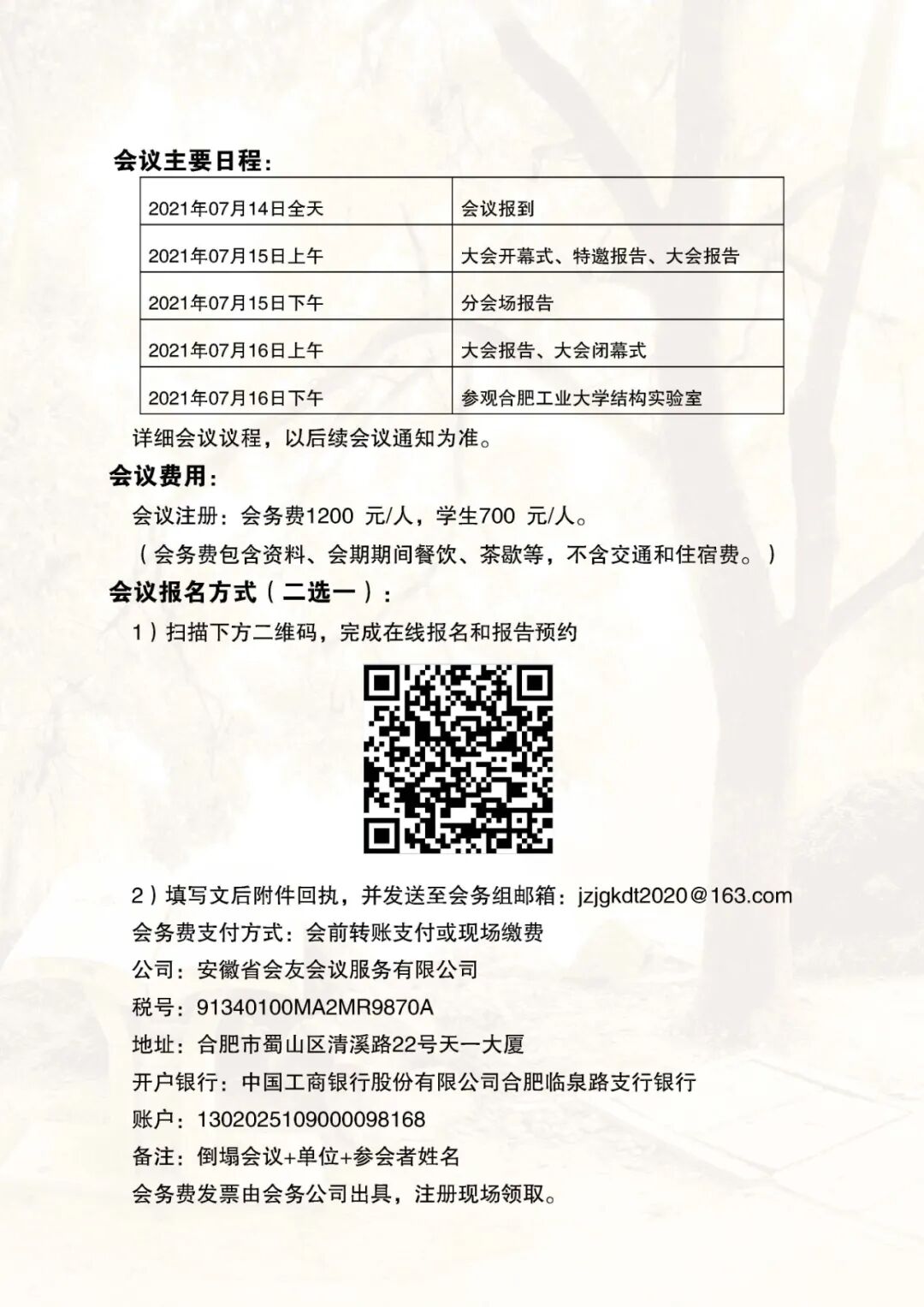 会议注册:会务费1200元/人,学生700元/人。