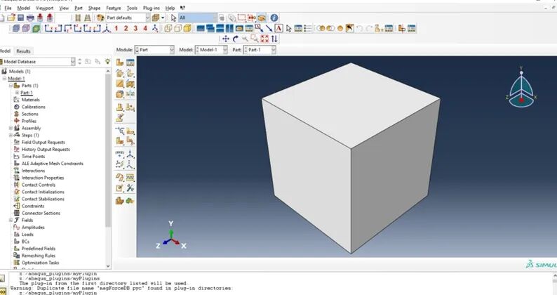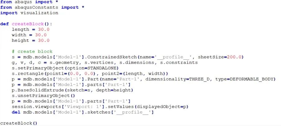 直接复制过来,在Abaqus中run一下就生成了一个30*30*30的立方体,如下图所示:(实际上,直接生成的语句有一个小错误,但在运行时,可以很方便的修改过来, 真的只需要那么一丁点儿的编程基础知识)
