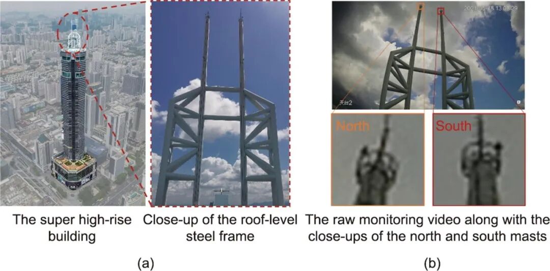 图1. (a)超高层建筑及(b)相应的监控视频。