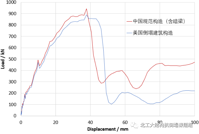 • 按照中国规范设计的节点存在板底部分切断钢筋变为通长以及暗梁中箍筋的约束作用,抗冲剪承载力会比倒塌建筑提高6%。