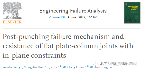 5.Pre- and post-punching performances of eccentrically loaded slab-column joints with in-plane restraints, Engineering Structures, 2021, 248: 113249. (新论文:偏心加载下的面内约束板柱节点冲剪破坏全过程性能研究)