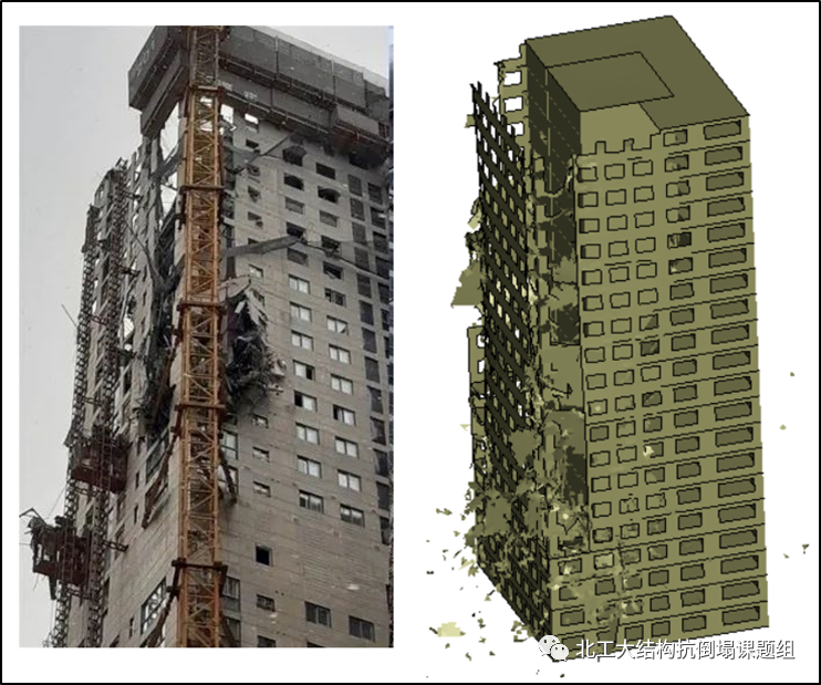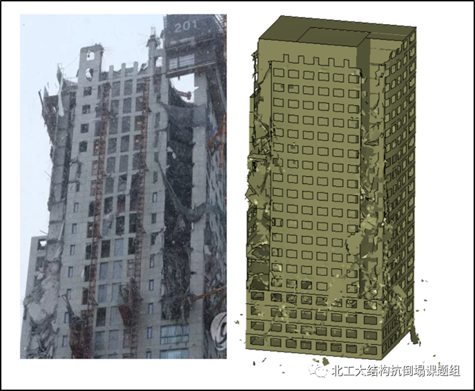 本工作根据清华大学陆新征教授团队提供的资料,基于LS-DYNA有限元分析软件,模拟了此次高层建筑倒塌事故的破坏过程及最终结果。