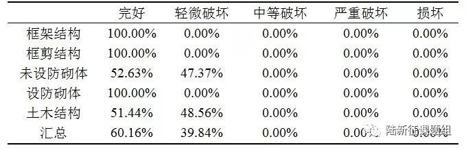 表1 53YPJ台站处不同结构类型建筑破坏比例