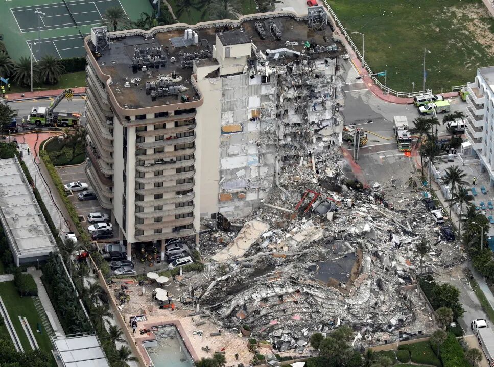 由于本研究重点是倒塌过程的可视化模拟,所以我们对倒塌的起因进行简化处理,假定局部立柱破坏。进而可以得到其倒塌过程如动画所示。(现场视频来源:WSVN 7 News)