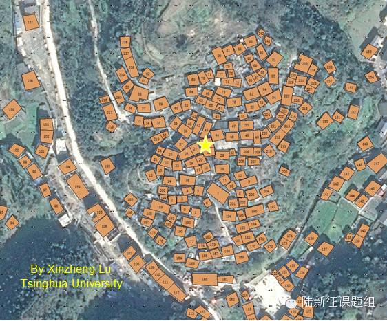 清华大学防灾减灾研究所目前正承担国家科技支撑计划“村镇火灾综合防治关键技术研究与开发(2014BAL05B04)”中部分专题研究。在前期研究中,任爱珠教授、赵思健等[1,2]基于HIMOTO Keisuke和TANAKA Takeyoshi等[3]的工作,提出了改进的火灾蔓延物理模型。本项目进一步针对村镇木结构建筑开发了基于上述物理模型的火灾蔓延程序,可综合考虑天气、热辐射、热羽流等蔓延因素的影响,此次温泉村寨火模拟就是通过该程序实现。需要说明的是,由于缺乏起火、灭火救援等资料,本次模拟还有很多方面需要改进,需要结合后续详细资料进一步完善。