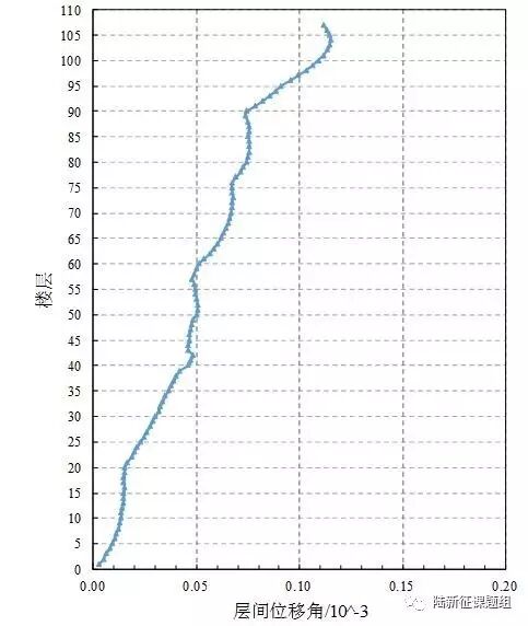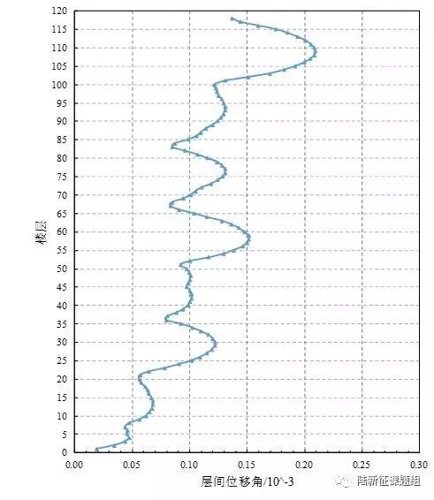 将云南乔后台站记录输入图7 (a)所示某典型超高层结构2,得到其层间位移角包络如图7 (b)所示,结构基本无损伤,顶层最大绝对加速度为0.030g,非结构构件基本无破坏。
