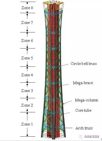 将云南乔后台站记录输入图6 (a)所示某典型超高层结构1,得到其层间位移角包络如图6 (b)所示,结构基本无损伤,顶层最大绝对加速度为0.086g,非结构构件基本无破坏。