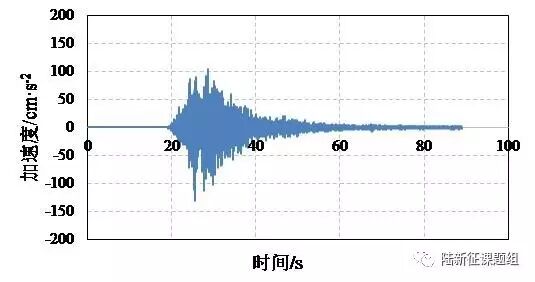 依据中国地震局工程力学研究所“国家强震动台网中心”对8•8九寨沟地震强震动观测简讯,截至2017年8月8日23时50分,共获取17组强震动观测记录。公布的数据中,九寨百河强震台(51JZB)震中距最小,震中距为30.50公里。台站位置为北纬33.2度,东经104.1度,台站位置示意图如图1所示。