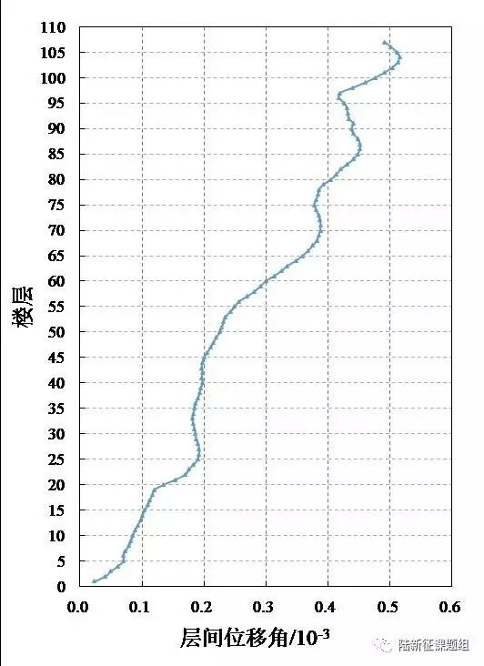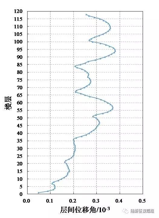 注:上海中心大厦的层间位移角包络图不包括大厦顶部桁架。