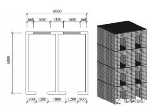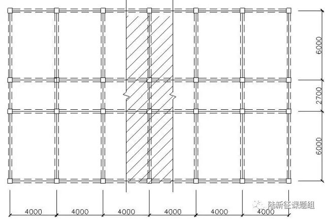 研究对象为一8度区RC框架结构,该结构为医院建筑,共4层,建于1989年,结构三维模型如图6所示。结构首层层高为3.9m,其余各层层高为3.6m,总高14.7m,场地类别为Ⅱ类,设计地震分组为第二组。结构基本周期为0.6s。考虑到该结构功能重要,北京建筑大学抗震减隔震团队对其进行了基于隔震技术的性能提升加固设计,隔震后结构周期为2.04s,相应的中震减震系数为0.26,隔震沟尺寸设为300mm。