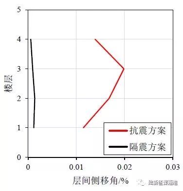 图7 抗震方案与隔震方案响应对比图(考虑双向组合)