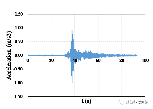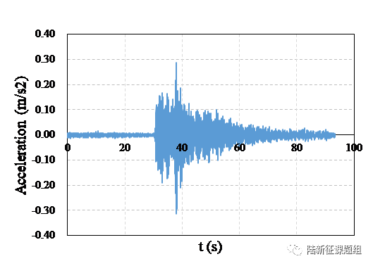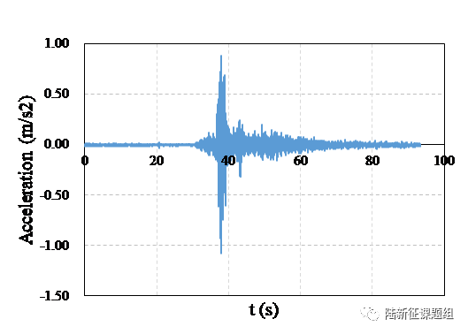 选取图8所示纪晓东等开展的单层未设防砌体结构振动台试验模型,输入65WLG台站记录,分析结果表明该结构将处于轻微破坏状态。(纪晓东等,北京市既有农村住宅砖木结构加固前后振动台试验研究,建筑结构学报,2012,11,53-61.)