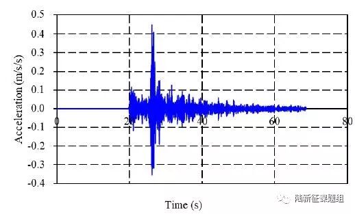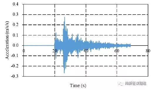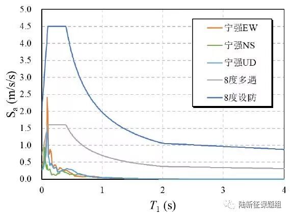 20180912陕西汉中宁强县5.3级地震获得了12条地震动记录。由于所获得的地面运动加速度记录PGA普遍较小,仅1个台站的地震动PGA达到44 cm/s^2,其余地震动PGA均不超过10 cm/s^2,因此本次不进行单体建筑破坏力分析,仅给出不同台站地震动记录可能造成的陕西汉中典型乡镇区域建筑的破坏分析。记录到最大地面运动加速度的台站编号51QCD,该台站记录的地面运动记录及反应谱如图2、图3所示。