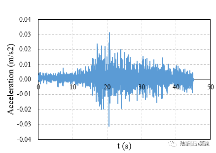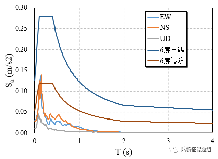 65YJT台站位置为北纬44.86度,东经84.80度(图1),记录到水平向地震动峰值加速度为3.1cm/s2,竖直向地震动峰值加速度为1.2 cm/s2,该地震动加速度时程如图1所示。本次地震记录到的地震动PGA很小。