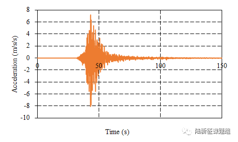8047台站位置为北纬61.189度,西经149.802度(图1),震中距18.4km。记录到水平向地震动峰值加速度为807cm/s2,竖直向地震动峰值加速度为367cm/s2。该地震动如图2、图3所示。