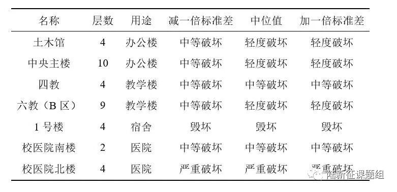 表1 清华校园典型建筑预测破坏状态