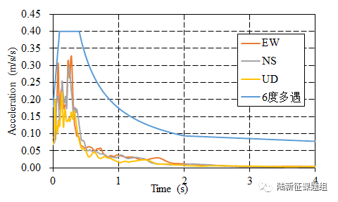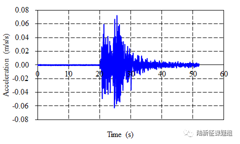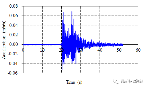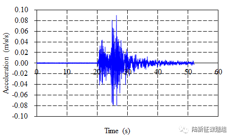 65BLK台站记录台站记录台站位置为北纬39.25度,东经75.08度(图1),记录到水平向地震动峰值加速度为9.001cm/s2,竖直向地震动峰值加速度为6.893cm/s2。该地震动如图2、图3所示。