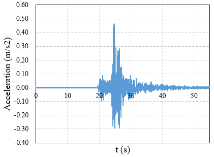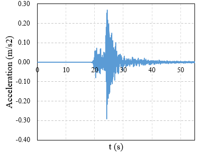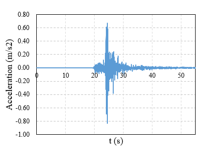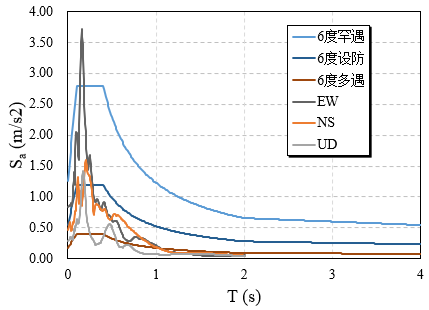 51GXT台站记录台站记录台站位置为北纬28.43度,东经104.7度(图1),记录到水平向地震动峰值加速度为83.59cm/s2,竖直向地震动峰值加速度为29.19cm/s2。该地震动如图2、图3所示。