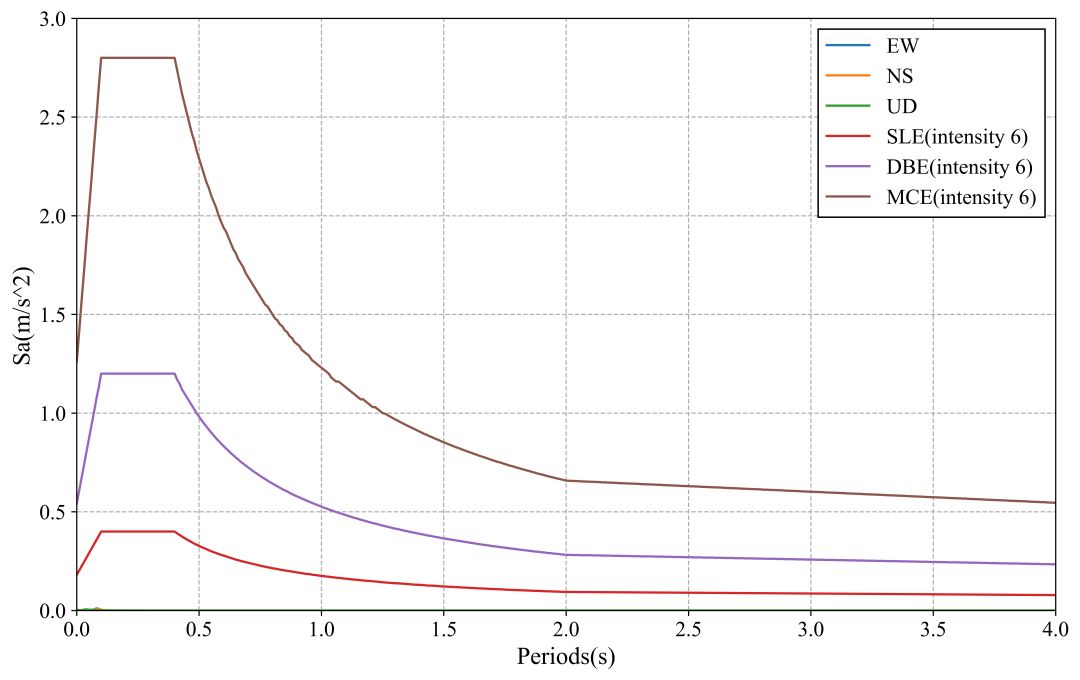 图3 M0008台站记录反应谱