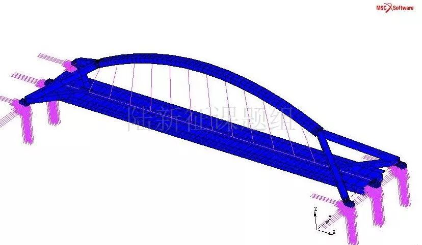 根据此前桥梁倒塌模拟经验(参考资料1:有限元+虚拟现实=桥梁倒塌的过程反演分析与场景再现,参考资料2:6月14日河源东江大桥垮塌事故有限元模拟及分析),采用通用有限元软件MSC.Marc建立了该桥的三维有限元模型,以模拟此次倒塌事故,如下图所示。