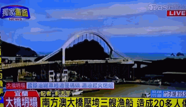 2019年10月1日上午9时30分左右,台湾宜兰南方澳跨港大桥发生断裂崩塌,桥上正行驶的油罐车连同桥面从约18米的高空摔落,停在桥梁下的3艘渔船当场遭压沉,已致10人受伤,5人失踪。在为这一事故深表痛惜的同时,重庆大学徐梁晋博士及清华大学研究生金鑫磊、顾栋炼、廖文杰、赵鹏举等采用有限元软件重现了南方澳跨港大桥的倒塌过程,为事故原因的探讨提供了一些参考。