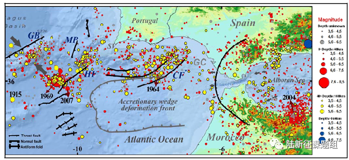 图3 摩洛哥1901-2010期间3.5级地震分布