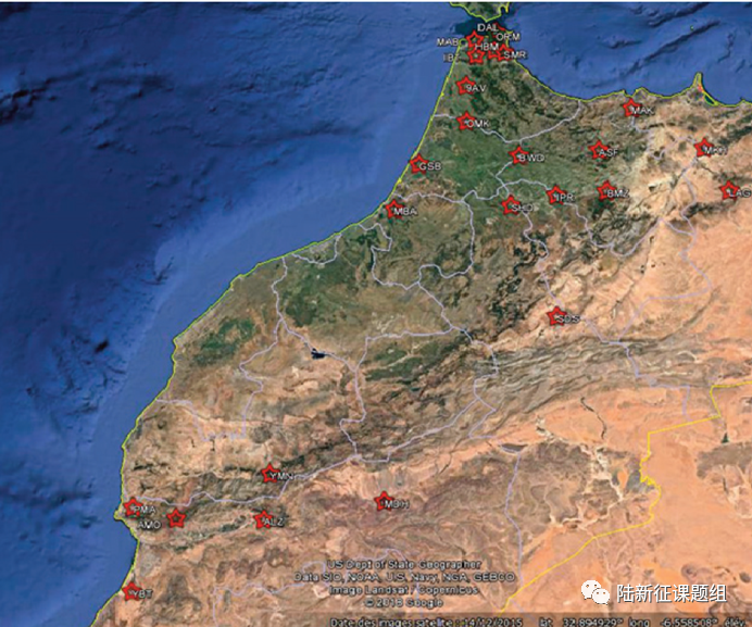 (Cherkaoui & Hassani , 2012)摩洛哥地震威胁最高的地区,50年超越概率10%(即重现期475年)的地面运动加速度在 0.08 至 0.16 g 之间(图4),过去曾发生过Al Hoceima和Agadir等大地震。 然而,根据Birouk等(2020)的研究,摩洛哥的强震台网数量和密度都不太行(图5、6),这次地震很可能无法获得近场的强震记录。