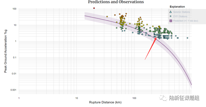 图6 美国USGS发布的本次地震动强度情况,最近的仪器数据在100km以外(图源:USGS)