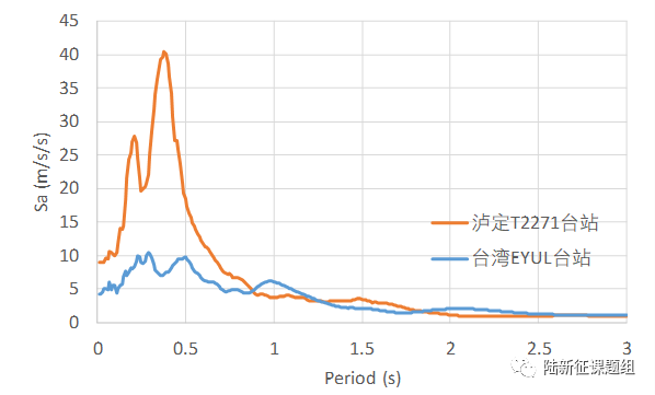 (b) 泸定T2271台站与台湾EYUL台站反应谱对比(EW分量)