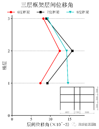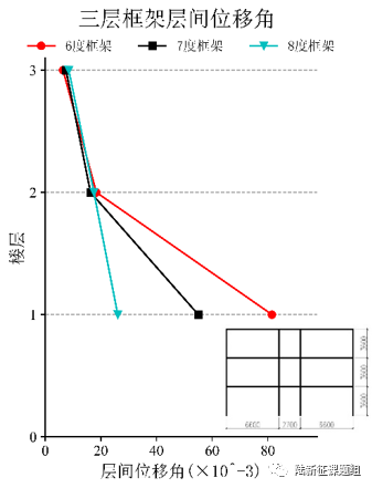 这里需要补充说明一下,由于6、7、8度三个框架的自振周期等动力特性不同,而实际地震动的反应谱也很复杂且和设计反应谱差距很大,因此弹塑性分析得到的层间位移角不是简单的6度>7度>8度。
