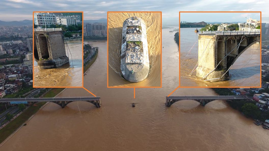 2019年6月14日凌晨2点12分19秒,广东河源市源城区东江大桥发生中间2跨垮塌,两辆小型车辆坠落河中。