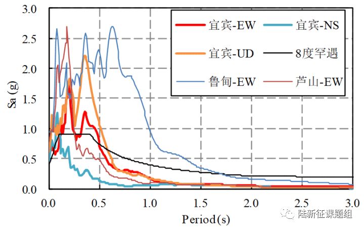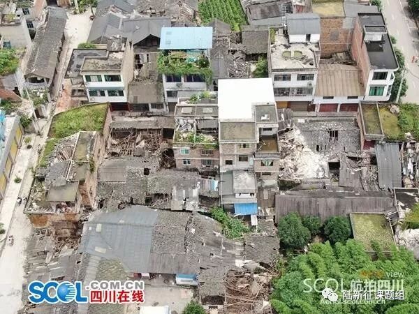 另外,地震很复杂,结构的地震响应行为也不简单。如果简单根据0.6g的峰值加速度(几乎相当于我国规范9度罕遇水准)来判断,那当地估计已经一片废墟了。但是结构的地震响应也不仅仅和地震的峰值加速度相关,还和结构自身的振动特性有关。就此次51GXT台站记录而言,虽然其峰值加速度和短周期分量很大,但是0.5s以后中长周期分量衰减很快。也就是说,这个地震对于低矮房屋可能是个王者,但是一旦遇到多层和高层建筑就变成青铜了。所以灾后网上有人拿台湾地震倒塌的高层建筑来传谣,实际上是完全错误的。我们将51GXT台站记录输入到典型单体建筑中进行弹塑性分析,计算结果如表1所示,可见,3层和6层框架的层间位移角不大,结构破坏较轻,这主要是因为分析所用3层和6层钢筋混凝土框架的一阶周期均大于0.5 s。而单层未设防砌体的一阶周期处于51GXT台站反应谱峰值段,因此其破坏更为严重。实际震害调查表明本次地震倒塌房屋73间,严重损坏房屋19间,一般损坏房屋12723间,倒塌建筑主要为低层老旧瓦房(如图3所示),与分析结论一致。