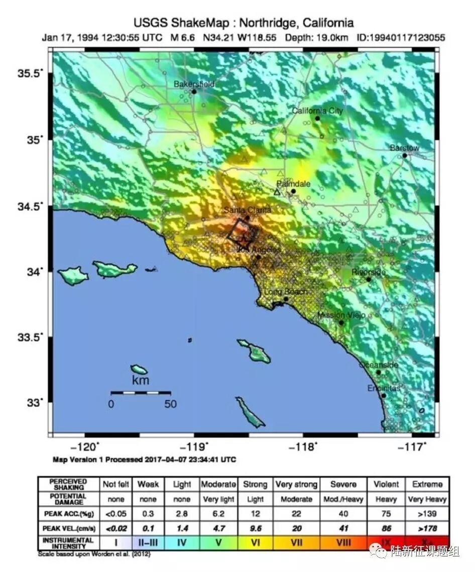 在1994年的6.7级北岭地震中,受灾最严重的区域地震烈度同样为9度。
