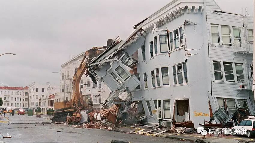 在1989年洛马-普雷塔(Loma Prieta)地震后,旧金山的滨海区的一座损坏的公寓楼。(Jonathan Nourok / AFP/Getty Images)