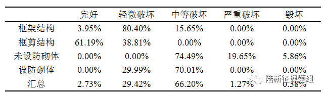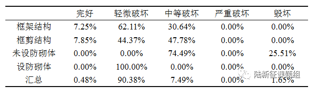 表2 墨西哥地震动C作用下我国8度区典型省会城市中心城区建筑破坏情况