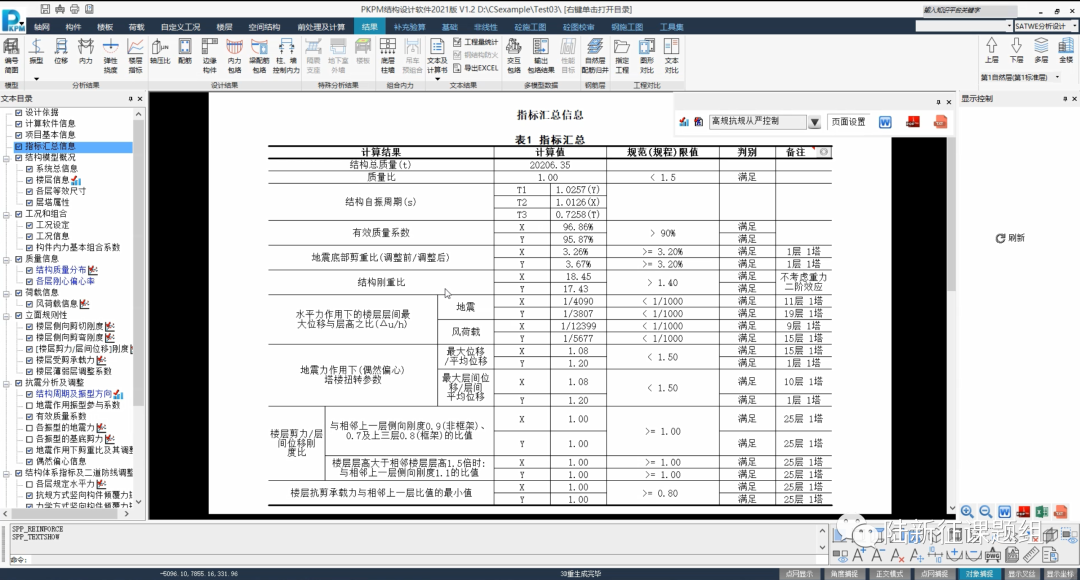 第五步,使用PKPM软件进行结构计算,计算完成后可以得到结构计算书、材料用量表、配筋图等关键设计成果(图7)。结构各控制性指标都符合规范要求,且经济性指标在合理范围内。