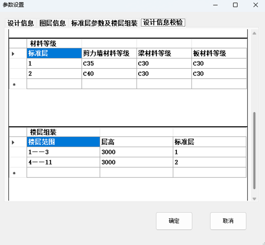 (c)设计信息校验中的材料等级信息和楼层组装信息