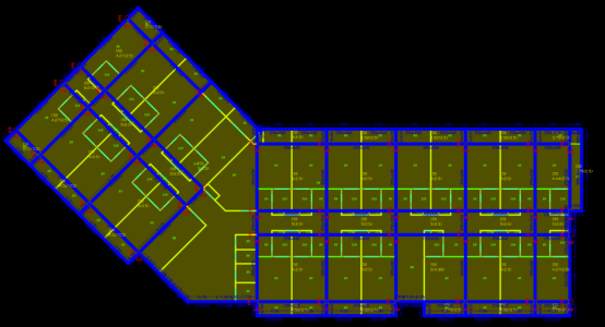 前处理完成后,用户执行框架梁智能设计,软件将自动根据建筑布局,完成框架梁的布置,结果如图4所示,蓝色为AI自动布置的框架梁。