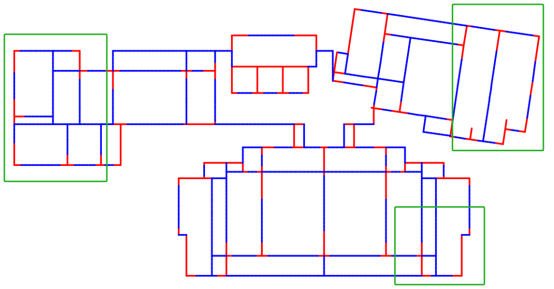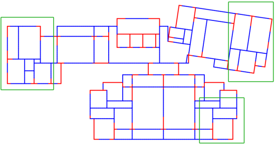图2(a)为一个复杂的建筑平面布置图,图2(b)和图2(c)分别为最新测试版和其他算法的设计结果,可以看出最新测试版的设计结果更适合该建筑平面布局,也更贴合工程师设计。