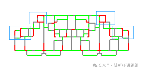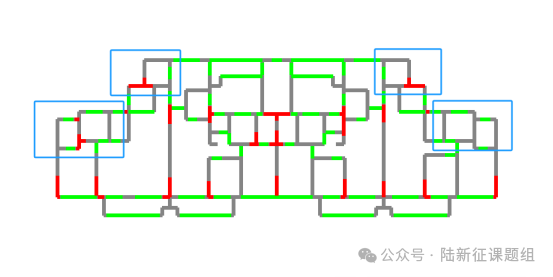 本次更新后,扩散模型可以更好的关注到建筑外轮廓角部的细节处理,布置的剪力墙也更加符合工程实际需求,如下图蓝色图框中所示。