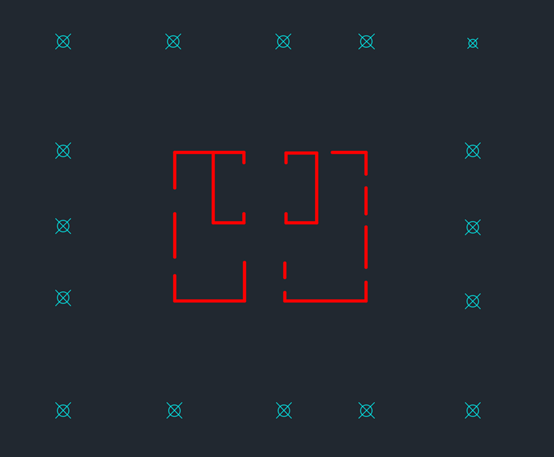 (b) 前处理后的CAD图纸轴线