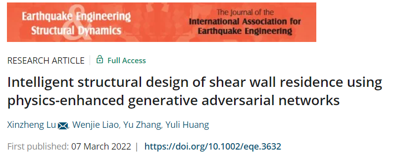 论文:Intelligent structural design of shear wall residence using physics-enhanced generative adversarial networks. Earthquake Engineering & Structural Dynamics. 2022. http://dx.doi.org/10.1002/eqe.3632