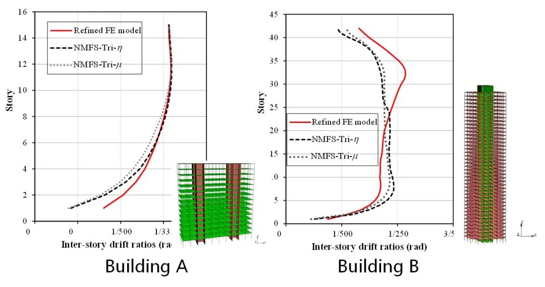 案例研究表明,本方法可以被应用于优化设计,1秒即可对比两个设计方案的层间位移角,且误差小于7%。而采用传统的精细模型则需要花费2分钟左右。可见,本方法将能够显著提升优化设计的效率。