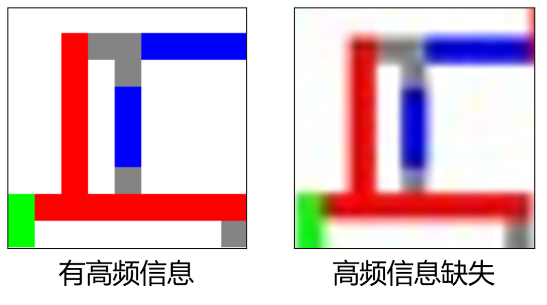 图5 高频信息对建筑图纸的影响(图像局部放大)