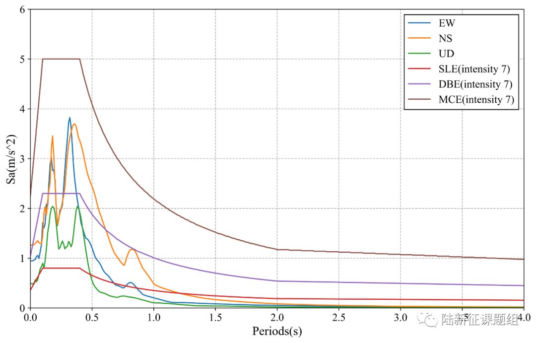 Figure 1 Response spectra of the recorded ground motions with maximal PGA