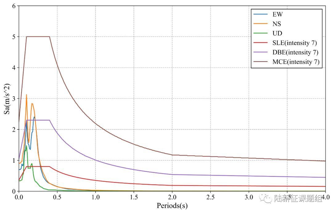 6 ground motions near to epicenter of this earthquake were analyzed. The names and locations of the stations can be found Table 1. The maximal recorded peak ground acceleration (PGA) is 91 cm/s/s. The corresponding response spectra in comparison with the design spectra specified in the Chinese Code for Seismic Design of Buildings are shown in Figure 1.