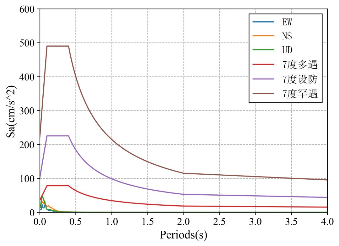 图3 63ZMS台站记录反应谱